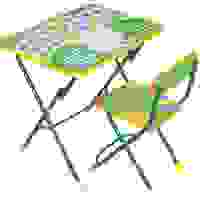 Комплект складной. Подходит для кормления, игр и обучения. Поверхность столешницы ламинированная с нанесением ярких познавательных рисунков. На поверхности стола можно рисовать маркером на водной основе.