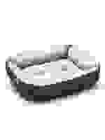 Особенностью этого лежака является его устойчивость и безопасность. Он обладает прочной конструкцией, способной выдержать вес даже крупных собак. Боковые стенки служат опорой и защищают животное от случайного падения. Также модель имеет обтянутый натуральной тканью каркас, который легко моется и устойчив к истиранию.