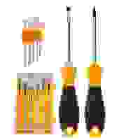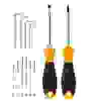 Состав набора: Отвертка для бит; Крестовой шлиц: PH000, PH00, PH0, PH1, PH2; Прямой шлиц: SL1.5, SL2, SL2.5, SL3, SL4; Шлиц TORX: T4, T5, T6, T8, T10; Тройной квадрат: M2.5; Шлиц типа Tri-point: Y0.6, Y3.0; Треугольный шлиц: 3.0, 2.3; Шестигранный шлиц: H1.5, H2.0, H2.5, H3.0, H3.5, H4.0; Головка под вилочный ключ: 2.6; Защищенный TORX: TR0.8, TR1.2, TR2.0; Магнитный держатель для бит - 1 шт.; Эргономичная рукоятка - 1 шт.